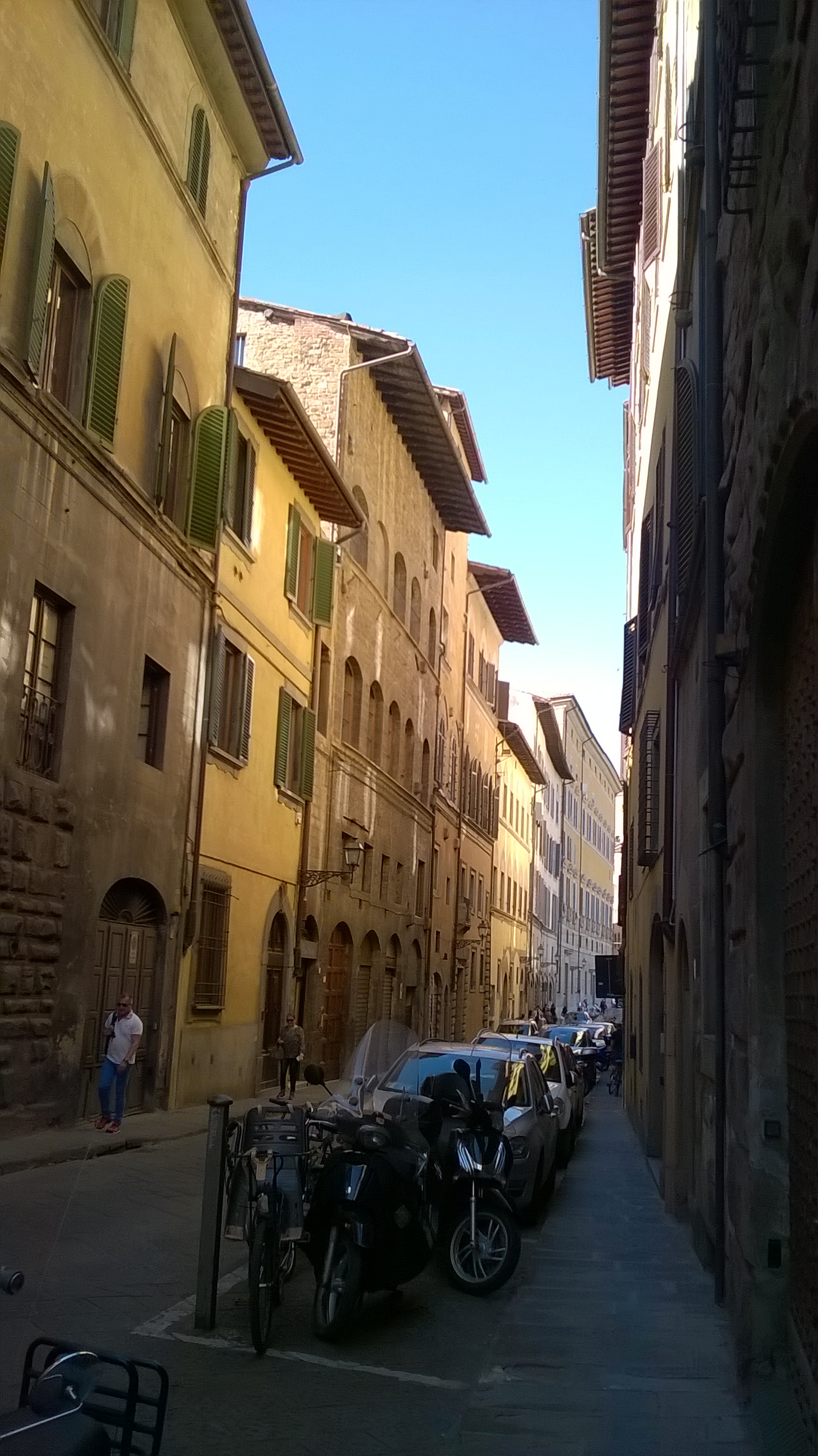At this point I was famished, and knew I was running out of time to fit in some lunch before class. The walk from the foundry towards the jewellery making school on Via Toscanella became a trot along Via dei Bardi, but once again I was forced to stop by the beauty of my surroundings. The buildings gently curved around into the distance and the wooden roofs overhanging the street jutted out against the sky, creating a blue strip of negative space worthy of a pause, despite being hungry and pressed for time. Even the negative space in Firenze is aesthetically pleasing!