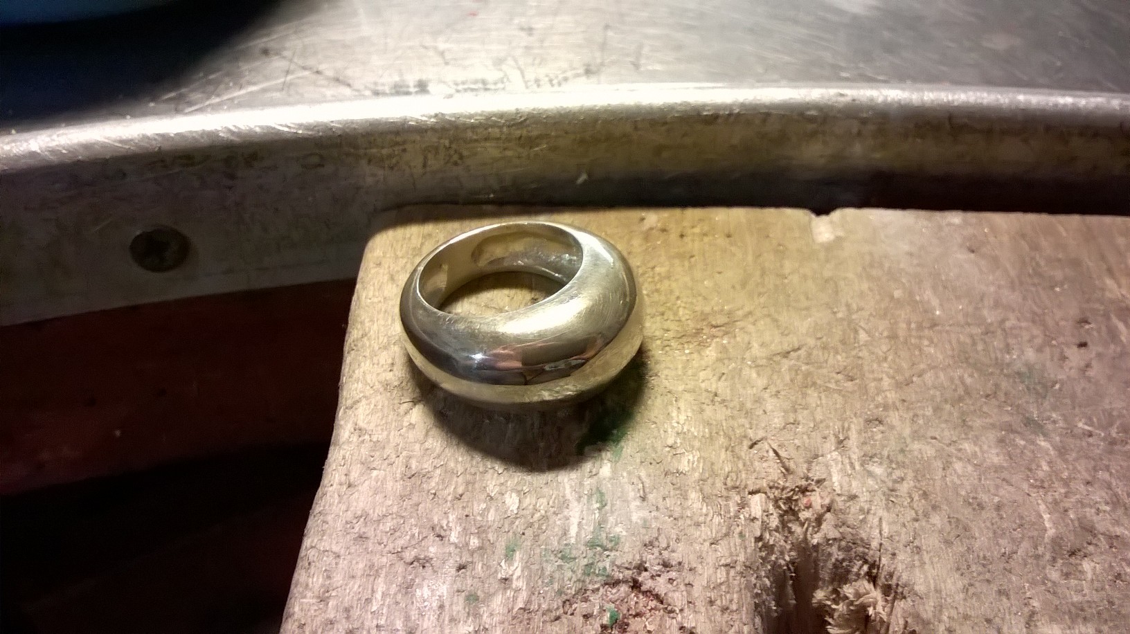 If this wasn’t enough to keep me occupied, I was also making wax copies of the bombato ring from my first post, which I had already collected from the foundry. It took some time but I filed off the rough edges, cleaned it up to a high polish finish and made a silicone mould of it.