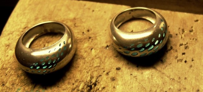 My square ring with the roundish stone has been a challenge to say the least, and the saga continued this week. Last Monday, in preparation for setting the stone Ignacio instructed me to give it a good shine on the polishing machine. Anyone who has used one of these will know that you have to be careful. Getting tangled up in the lathe is to be avoided at all costs.